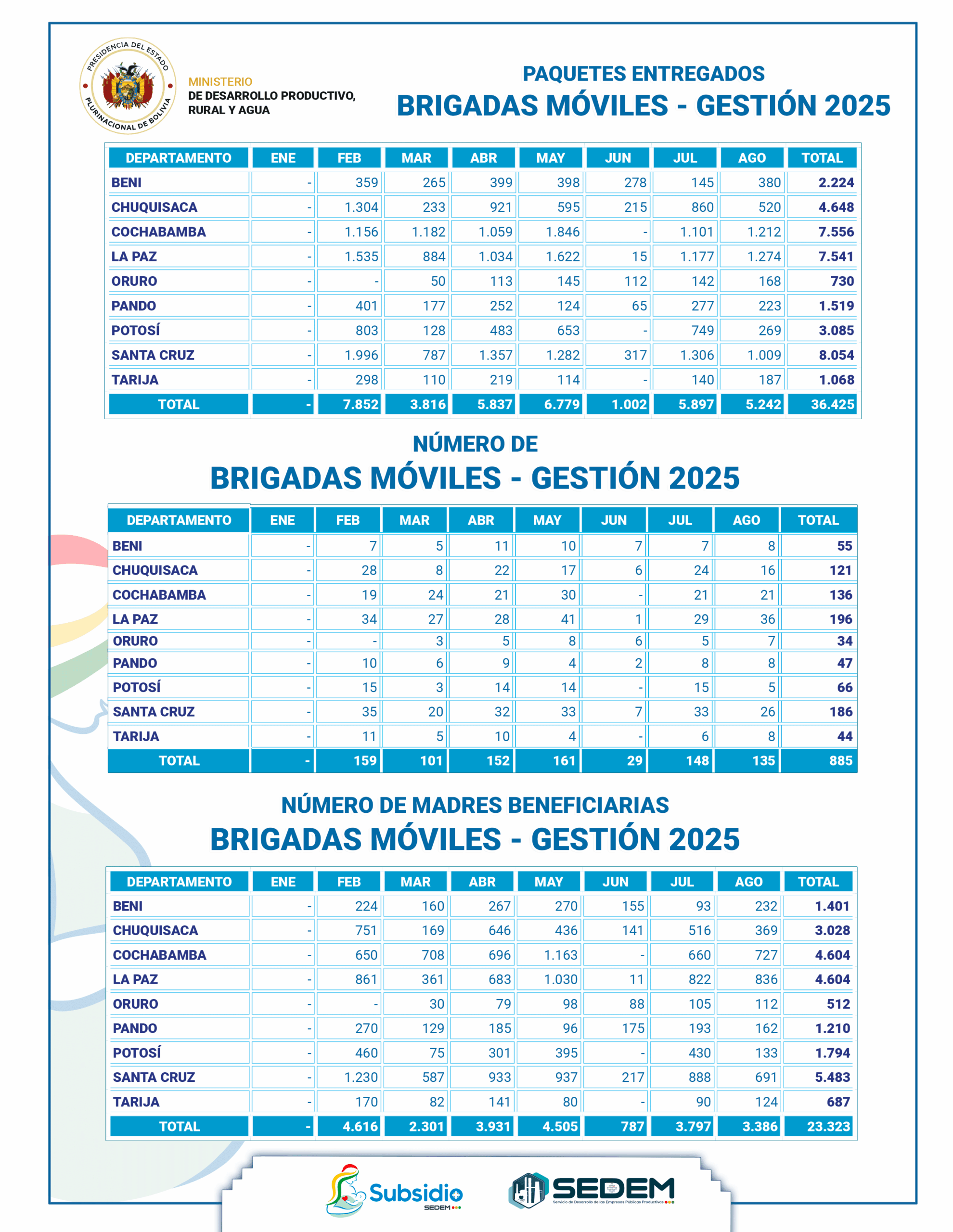 El Servicio de Desarrollo de las Empresas Públicas Productivas SEDEM a través de sus brigadas móviles, llegó al municipio de ZUDAÑEZ de la provincia Zudañez, en el departamento de Chuquisaca para realizar la entrega de paquetes del Subsidio Universal Prenatal por la Vida.