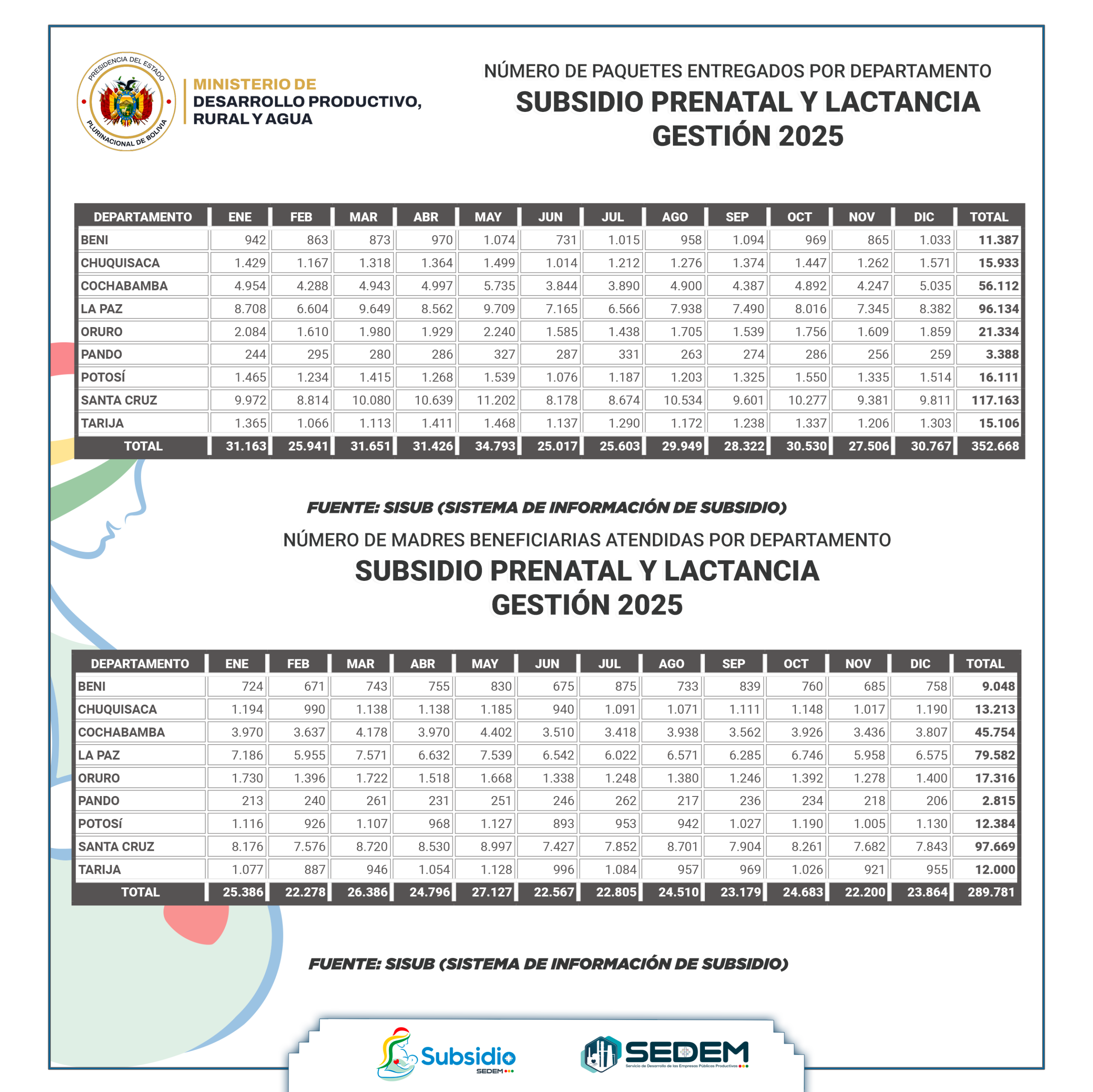 • PAQUETES SUBSIDIO PRENATAL, LACTANCIA, PAQUETE PRENATAL, LACTANCIA ESPECIAL Y UNIVERSAL PRENATAL POR LA VIDA